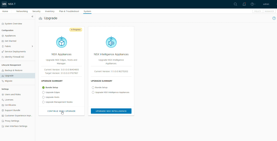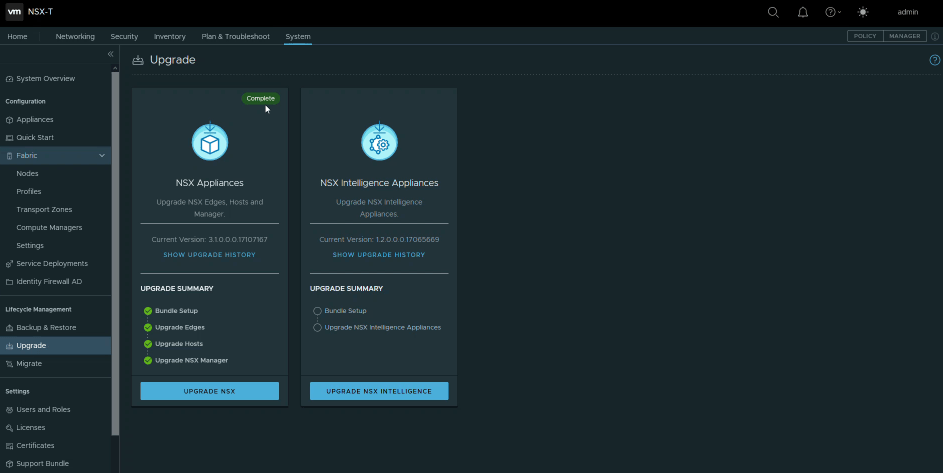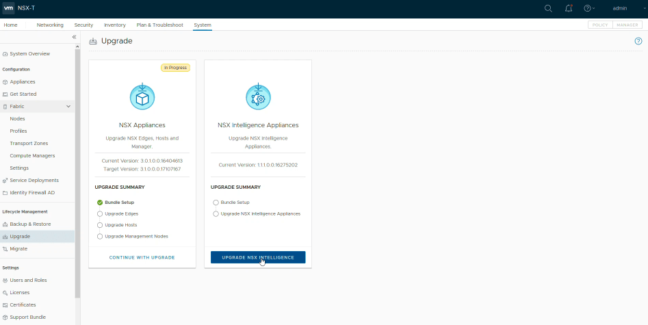 Oh yes, if there are NSX Intelligence Appliances within the NSX-T Data Center environment, there is another upgrade bundle necessary to grab and install. Another three GB of data and storage and 60 minutes of upgrading time.