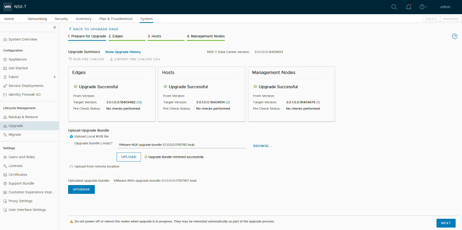 In case you are interested in upgrading to the latest version of VMware’s virtual networking and security platform, NSX-T Data Center 3.1, I have posted a video on my YouTube Channel (https://www.youtube.com/c/vgandalf) detailing the process of using the wizarding process called the Upgrade Coordinator. Check that out for more details.